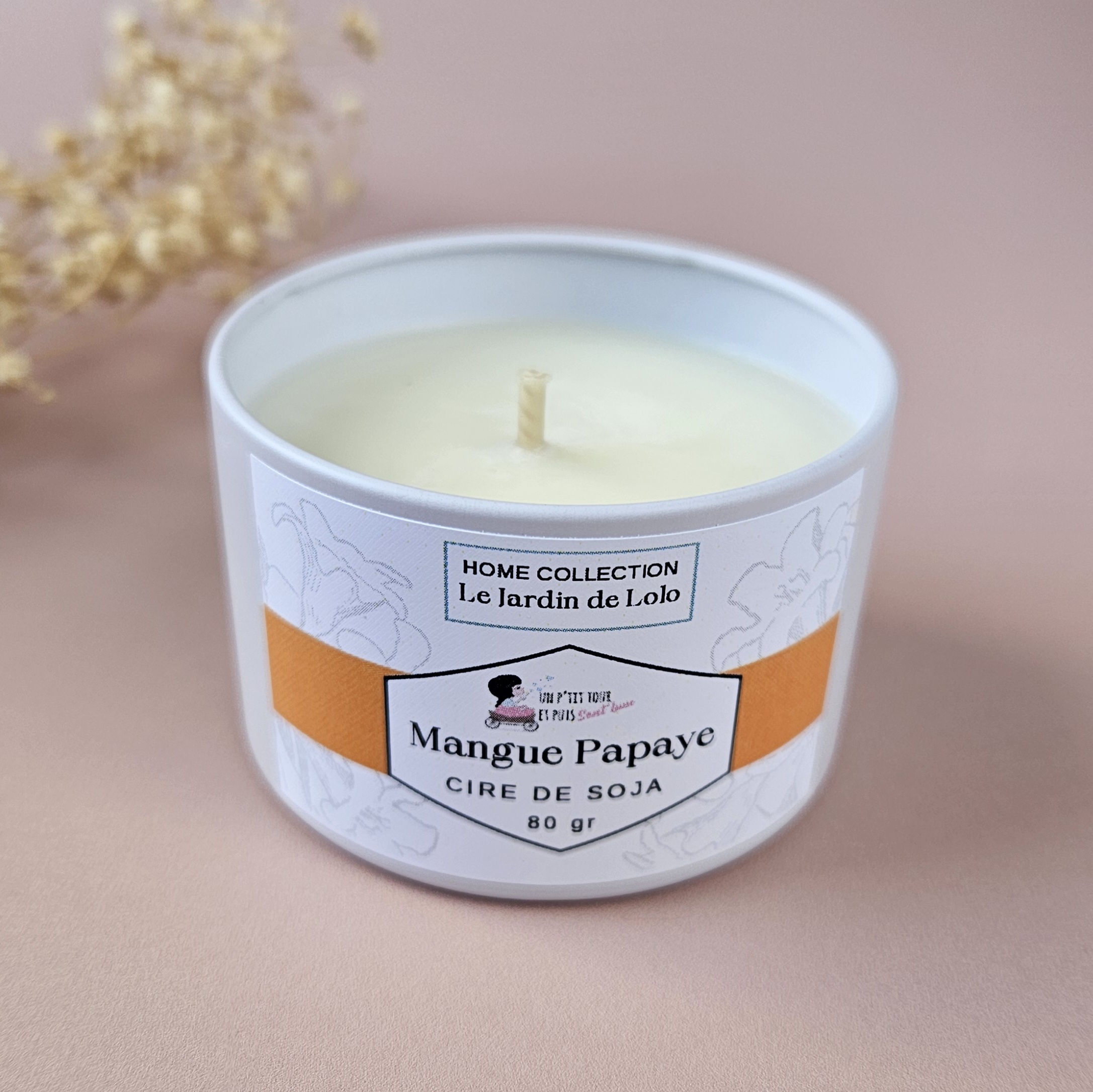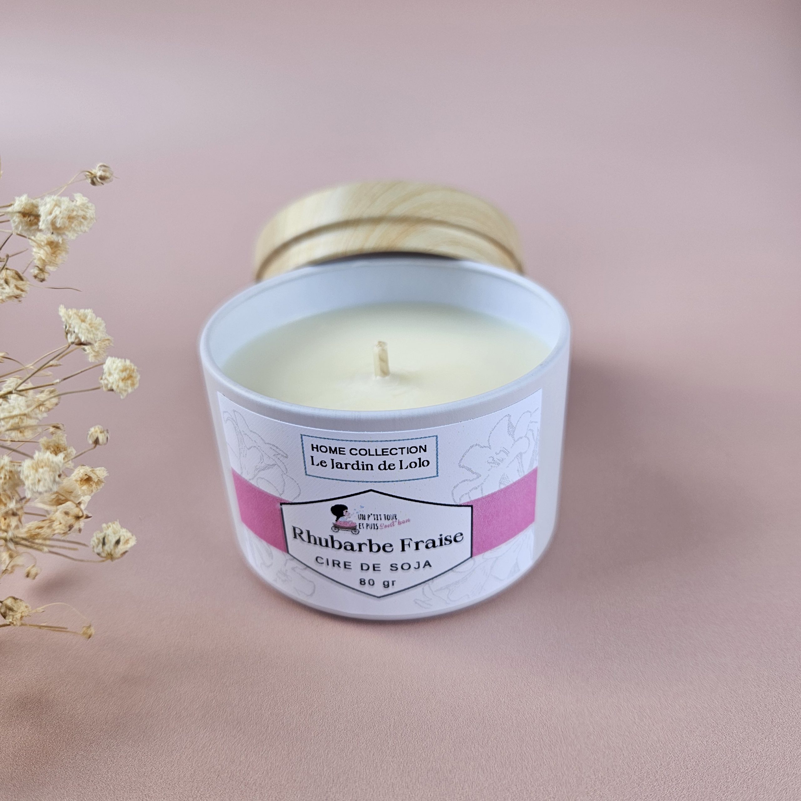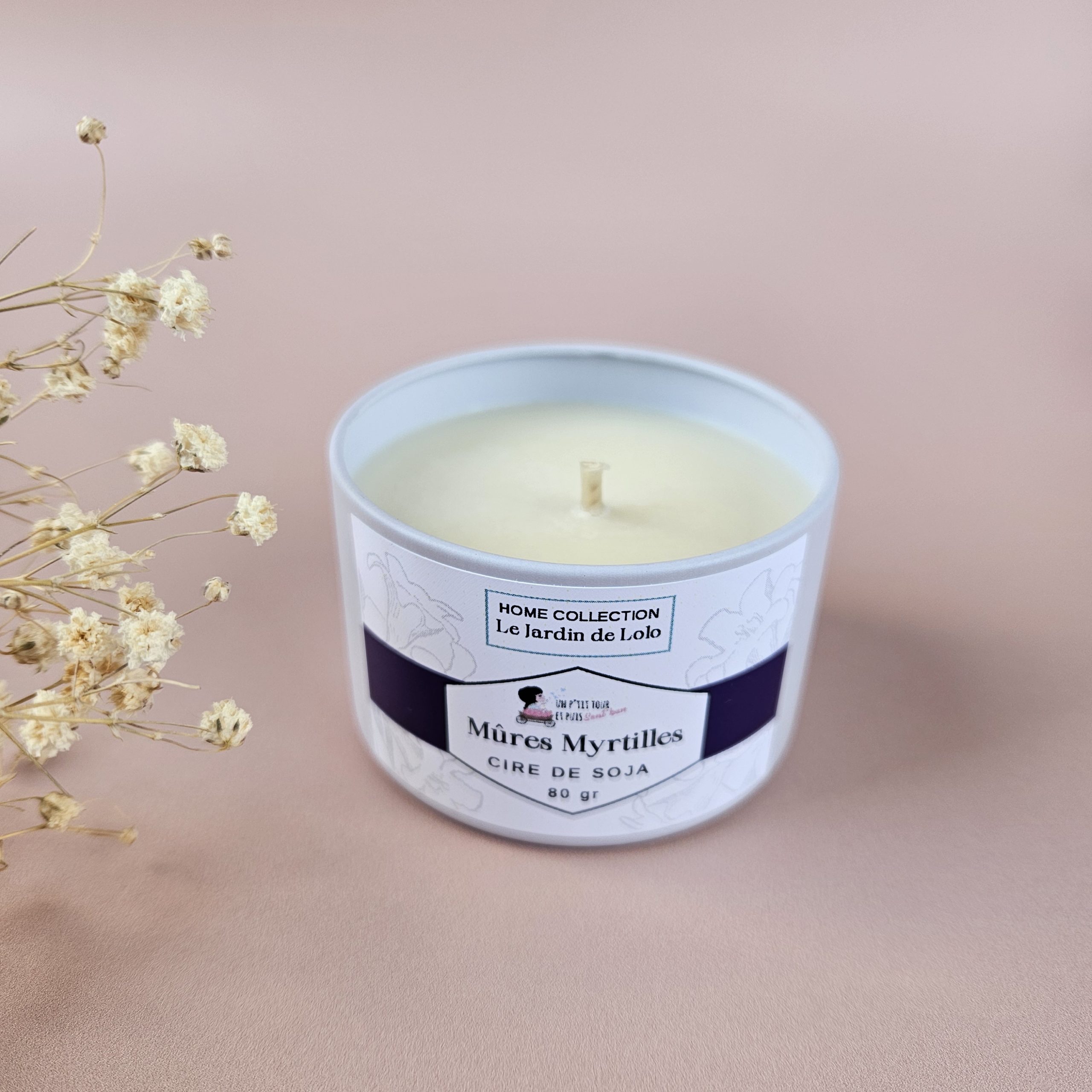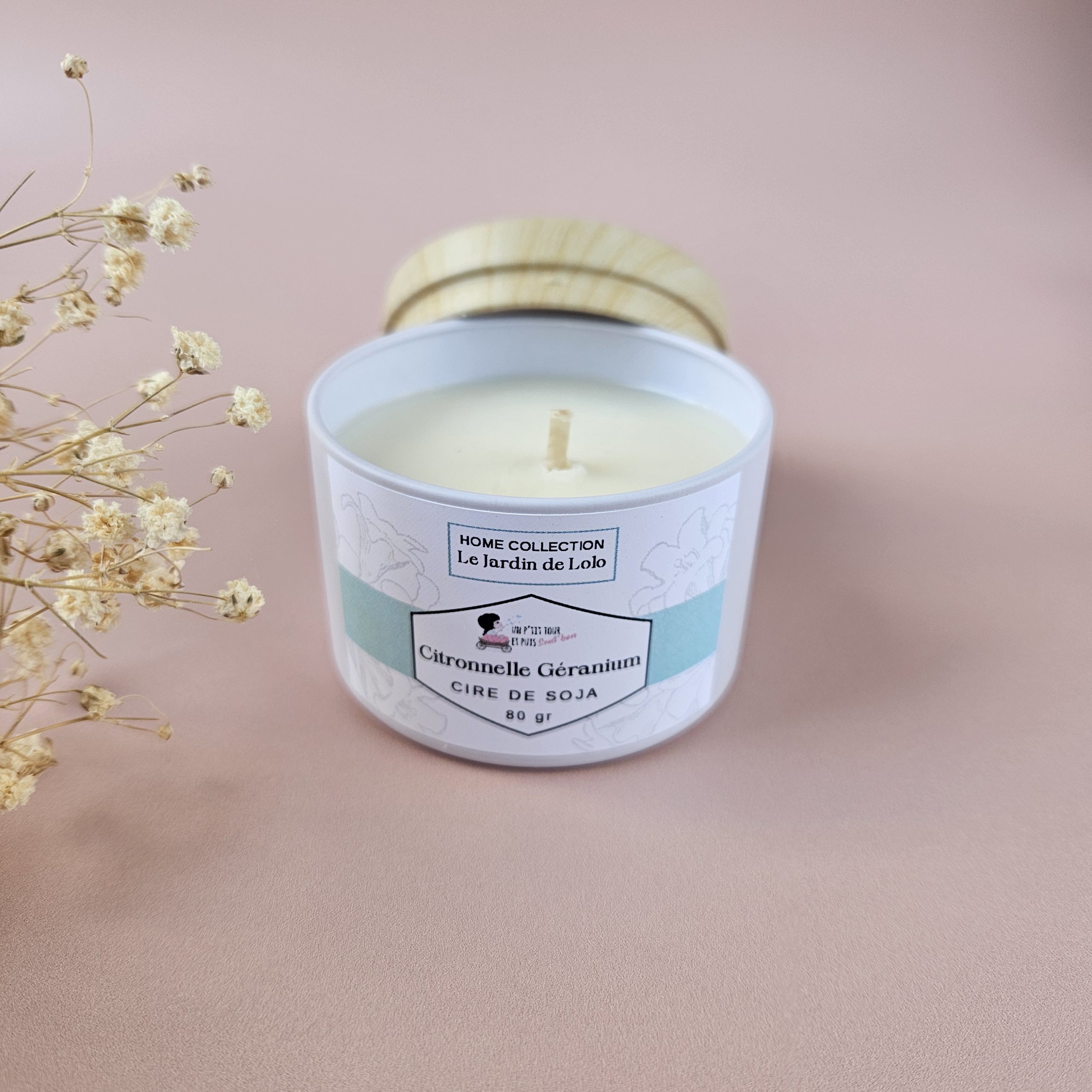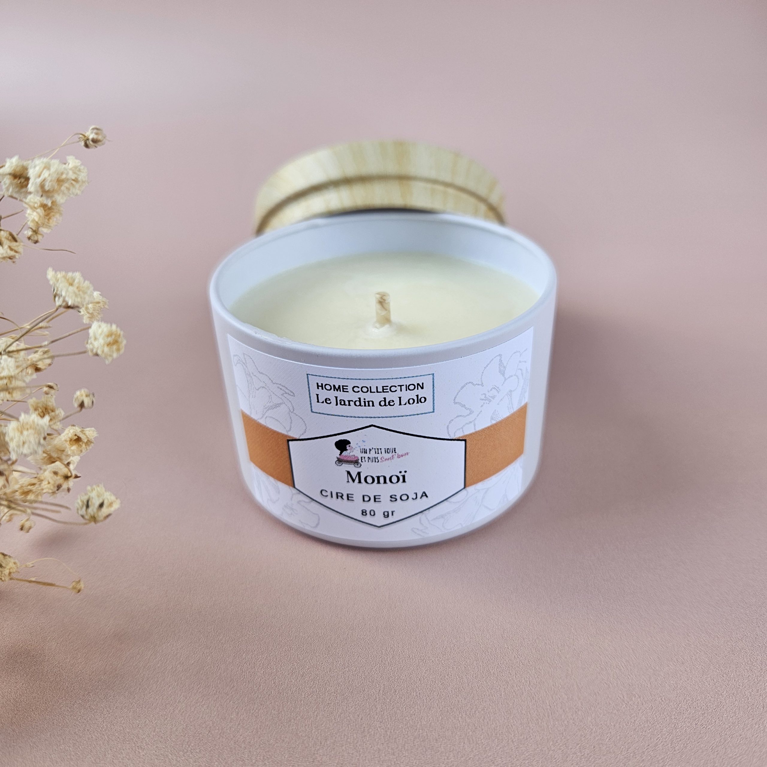 Bougie artisanale à la cire de soja avec mèche en coton.